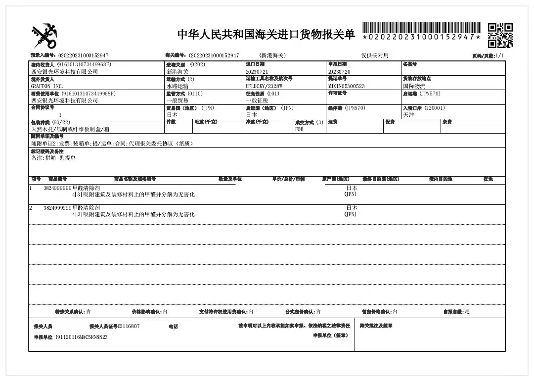 荃芬產(chǎn)品日本報關單憑據(jù)記錄。