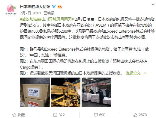 日本政府向武漢運(yùn)輸支援物資